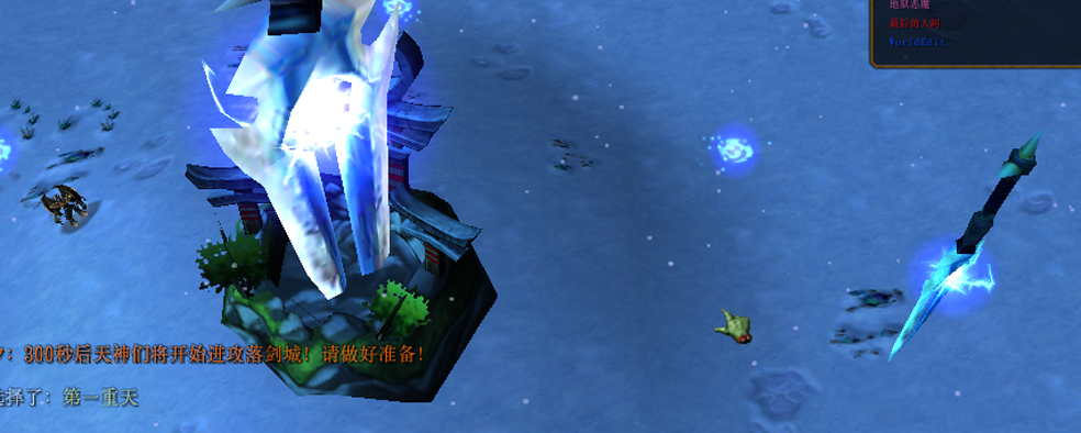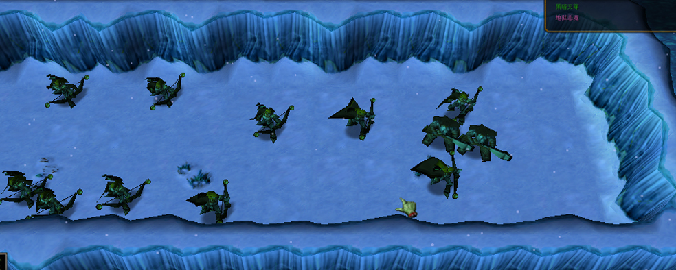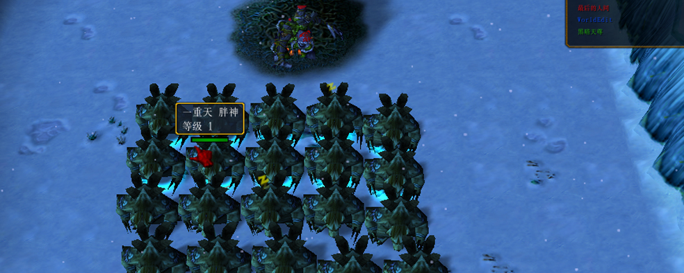 带着已经曾经的、不再的游戏设计师的梦想,我在假期和晚上回家时做起魔兽RPG地图《秋帝》。这是我第一次尝试防守题材,遇到一些困难,于是草草另做了一个试验品。不用任何华丽的模型,最简单的地形,只是用来测试系统。连发布的打算都没有,名字也是随便取的。这就是最初的《黑暗天尊》。
