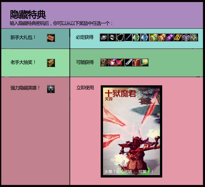 – 2)礼包改为隐藏特典的形式,只要一个密码