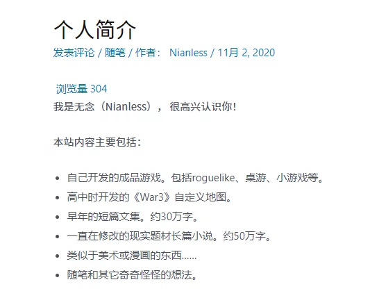 无念个人网站的简介,网址:https://nianless.com