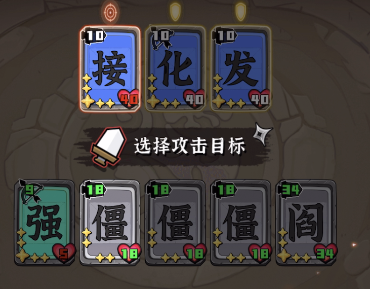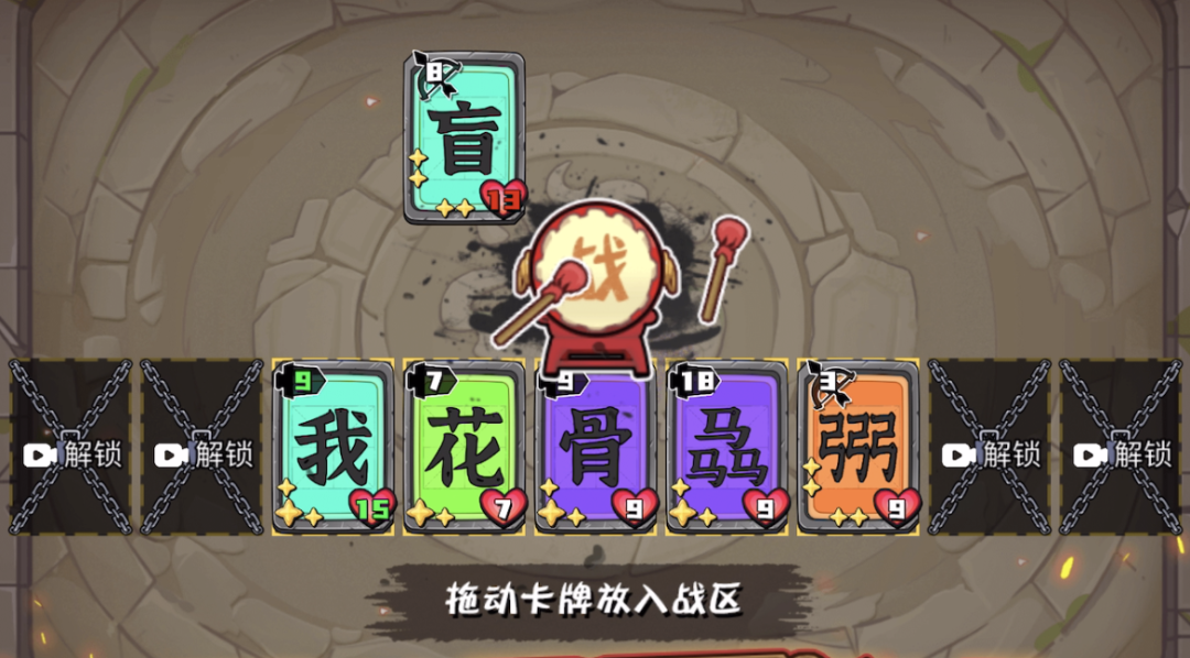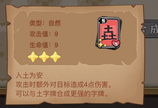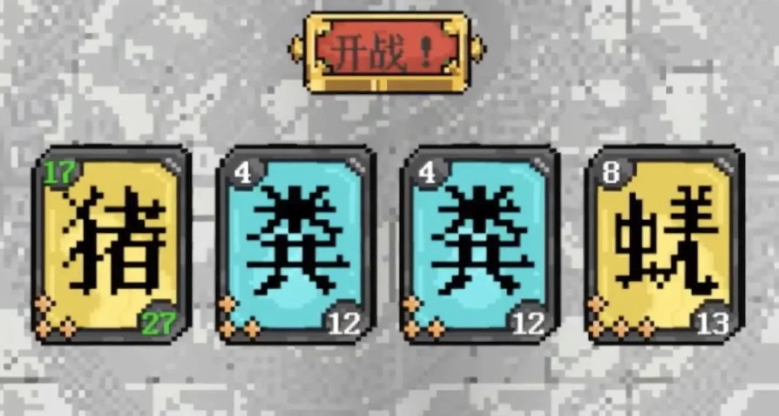 每个字的笔画数量,即是卡牌的初始生命值;不同汉字卡牌组合,将生成一个新的卡牌。