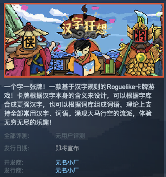 《汉字狂想》是一款号称“老外绝对玩不懂”的「汉字题材卡牌肉鸽对战」游戏。